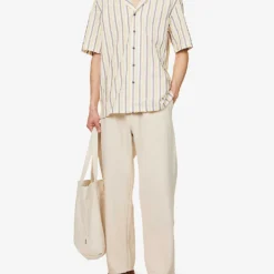 Striped Short-sleeved Cotton And Linen-blend Shirt