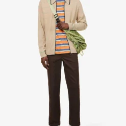 Contrast-panel Striped-pattern Regular-fit Wool-knit Cardigan