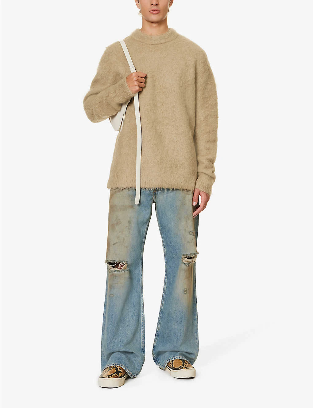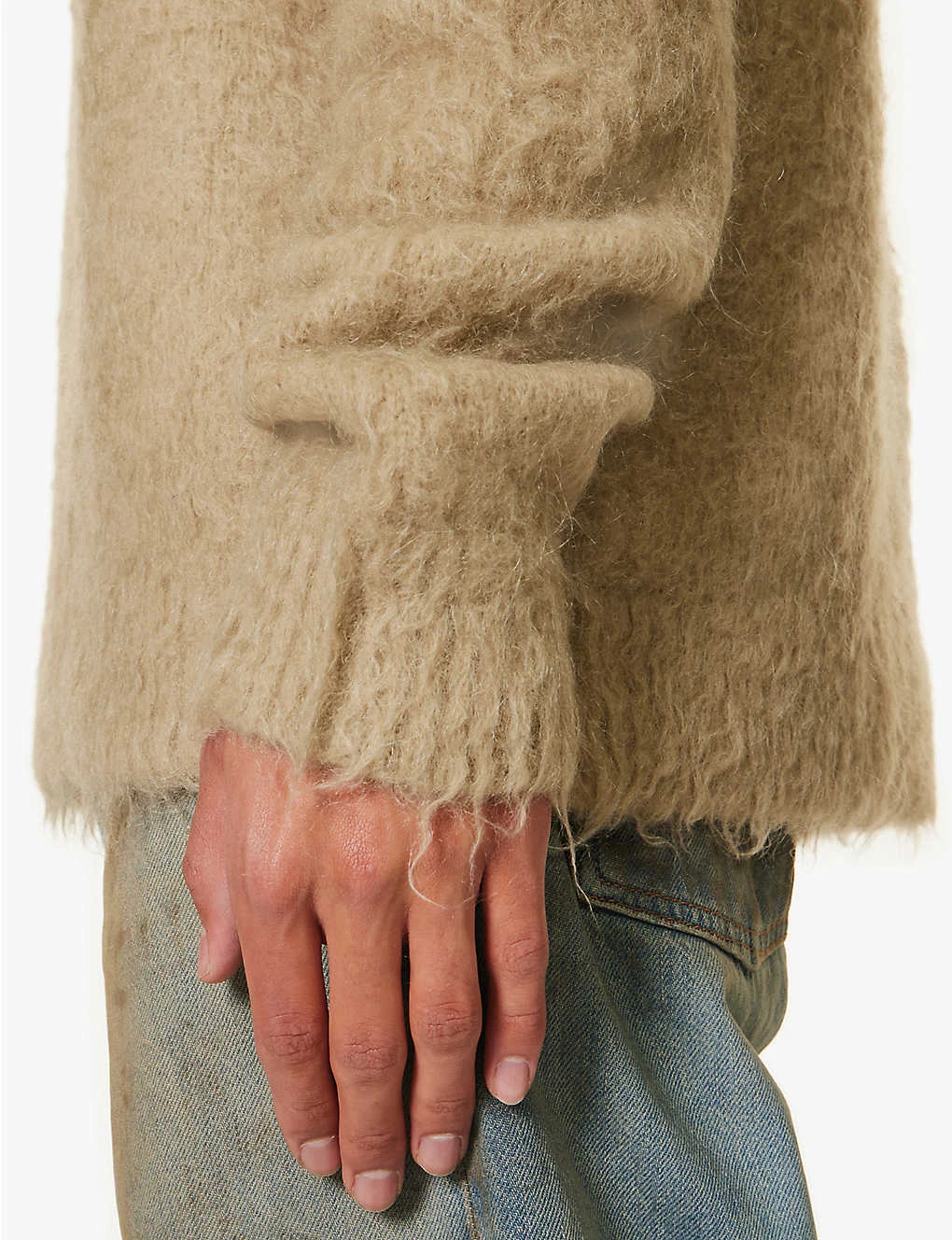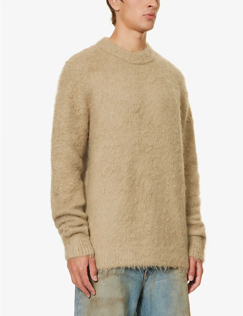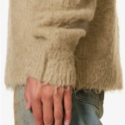 - Relaxed fit, crewneck, dropped shoulders, long sleeves, fuzzy texture, ribbed trims