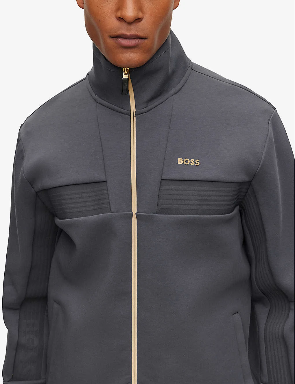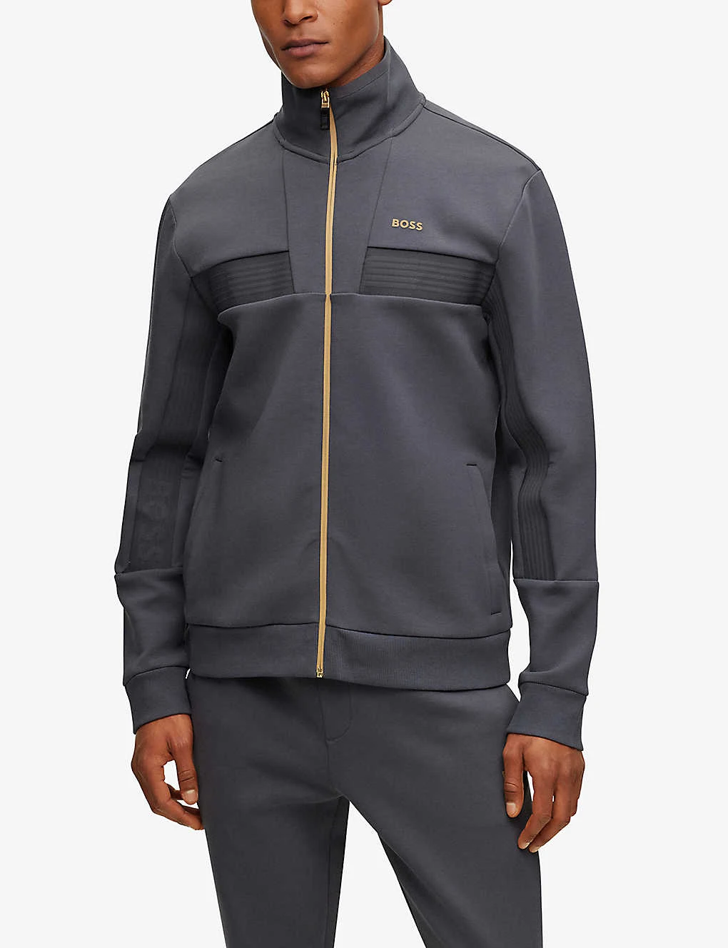 Boss Funnel-neck Zipped Regular-fit Cotton-blend Sweatshirt