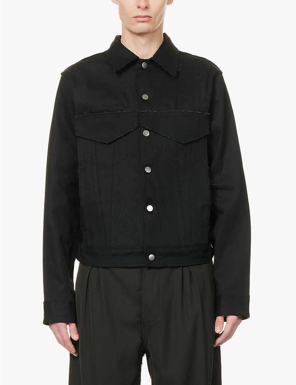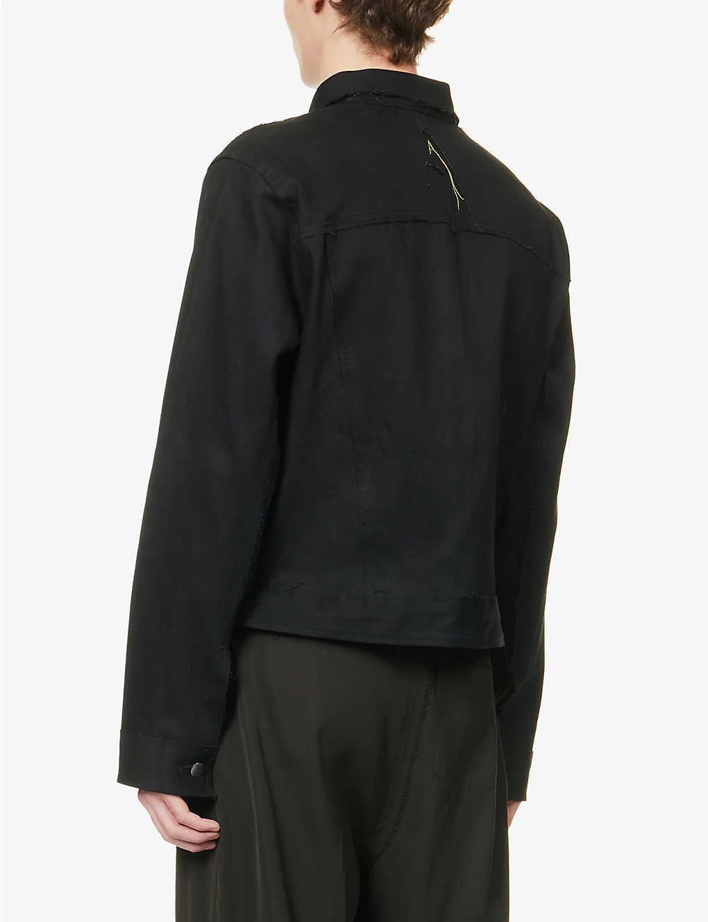 Brand-embroidered Distressed Boxy-fit Cotton-twill Jacket