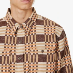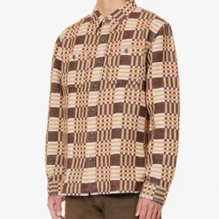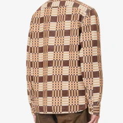 - Relaxed fit, collar, long sleeves, two buttoned pockets at front, straight yoke at back, all over check print, all over knitted, curved hem