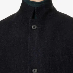 - Regular fit, stand collar, long sleeves, buttoned cuffs, patch pocket at chest, two flap pockets at front, double vent at back, internal patch pocket, brushed texture