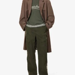 - Exposed button and concealed zip-fly fastening at front