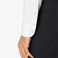 - Contemporary fit, long sleeves, rounded single cuffs, four-way stretch, curved hem