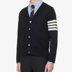 Be the first to review “Four-bar V-neck Regular-fit Wool-knitted Cardigan” Cancel reply