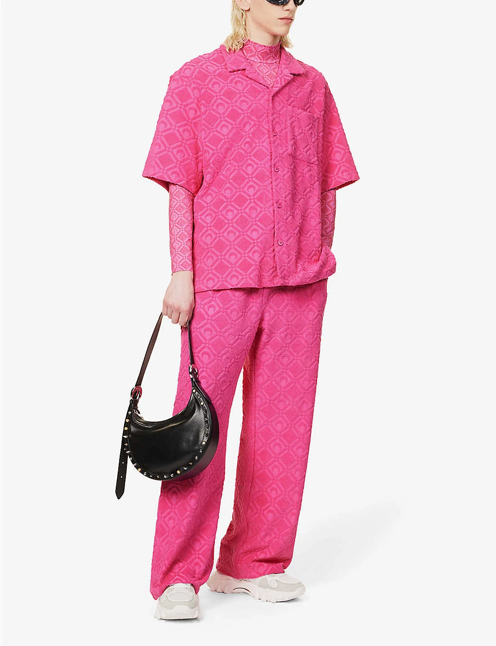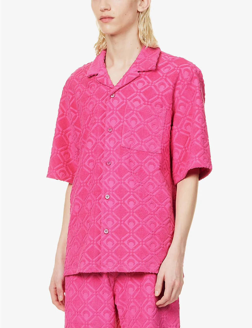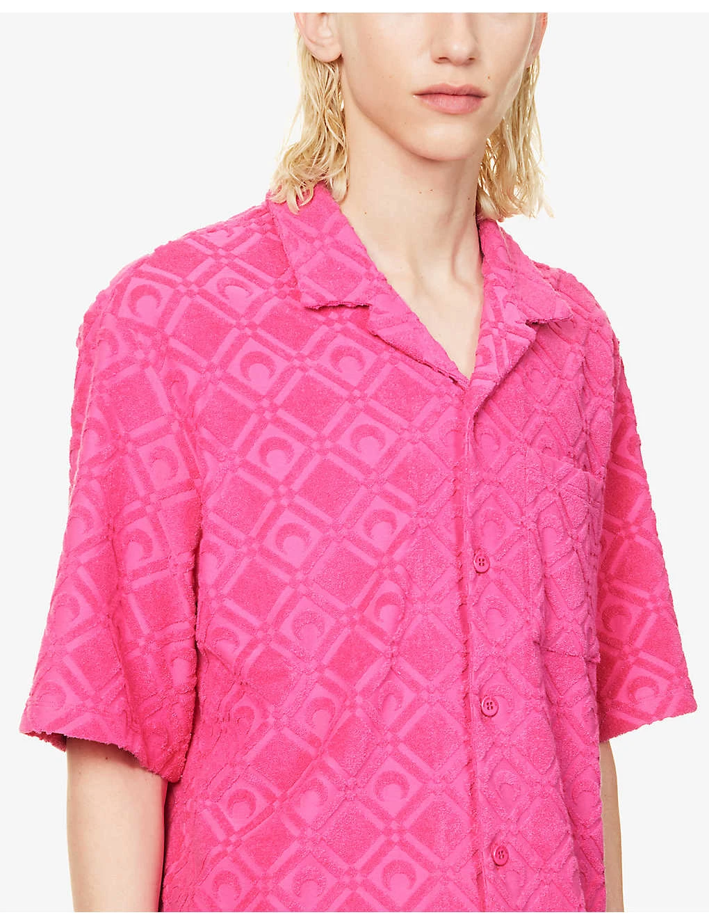 Marine Serre Jacquard-pattern Towelling-weave Cotton-blend Bowling Shirt