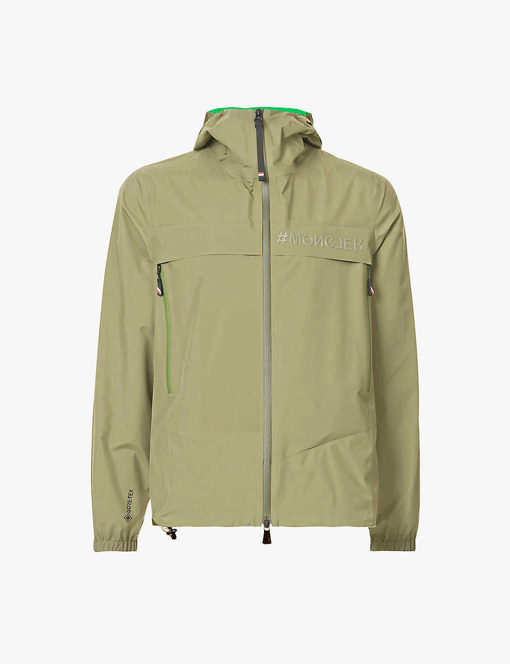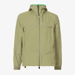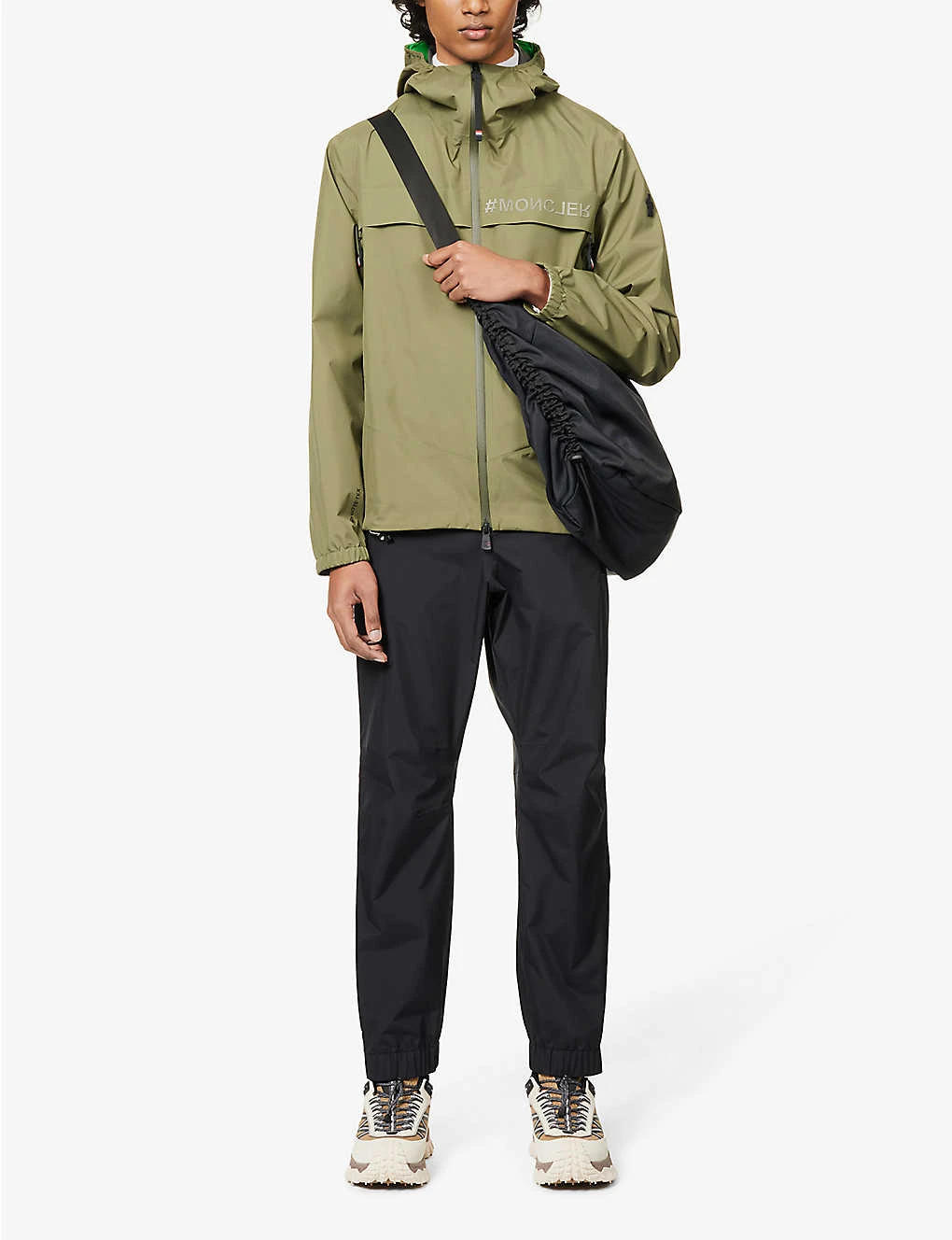- Regular-fit, hood, long sleeves, elasticated cuffs, rubberised brand badge at sleeve, text appliqué at front, two zipped pockets at front, fully lined