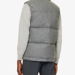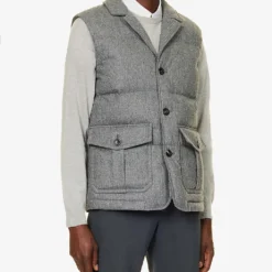 - Regular fit, notched lapels, sleeveless, two buttoned flap pockets at front, quilted padding, fully lined