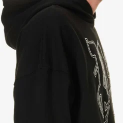 - Oversized fit, hood, dropped shoulders, long sleeves, embroidered branding at chest, brand patch at side, distressed ribbed trims