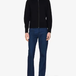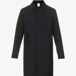 - Collar, long sleeves, two buttoned-welt pockets at sides, single vent, fully lined, one internal pocket