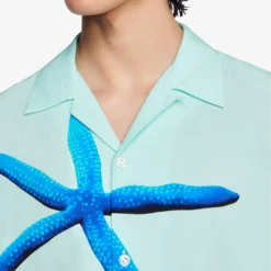 - Relaxed fit, spread collar, short sleeves, Starfish print at front, straight hem