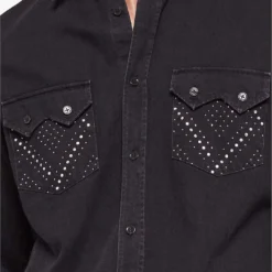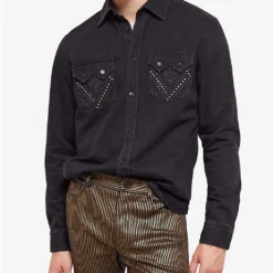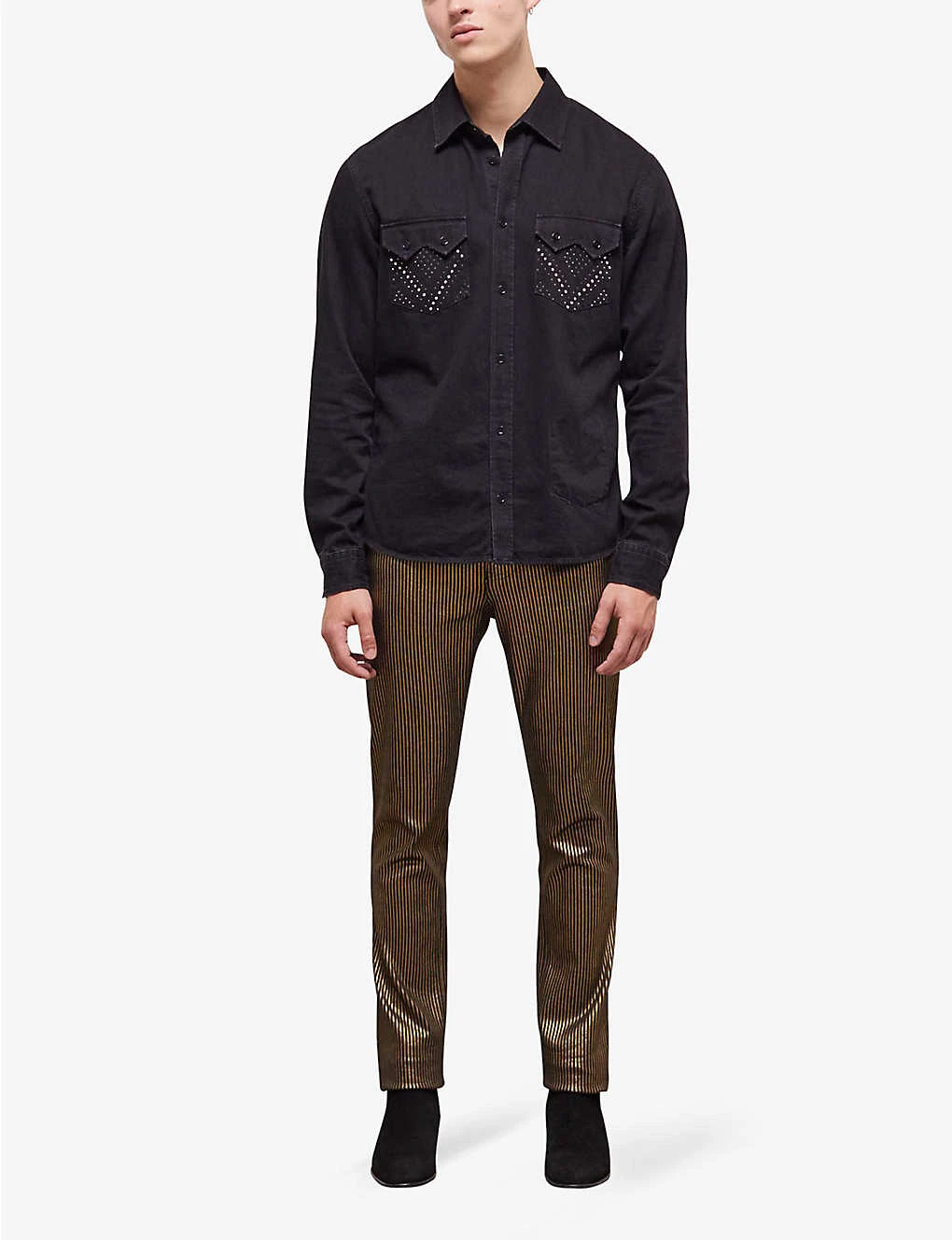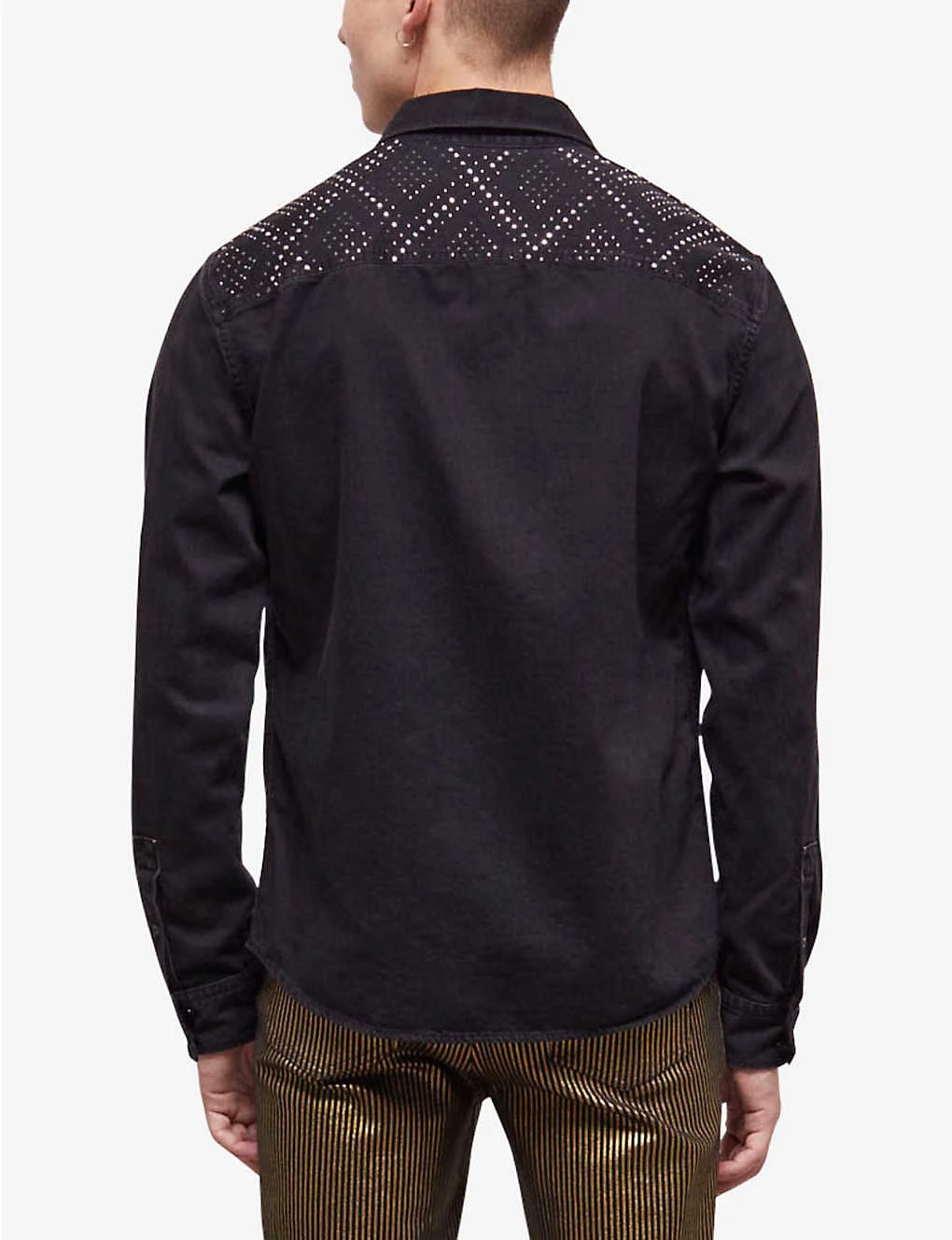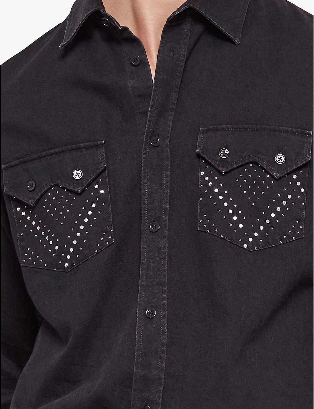 - Slim fit, collared, stud-embellishment, long sleeves, pocket detail