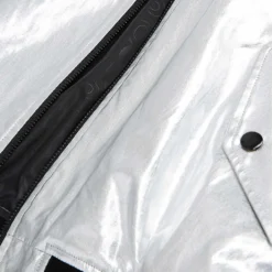 - Stand collar, raglan sleeves, all-over metallic, popper-fastened flap pockets, contrasting trims