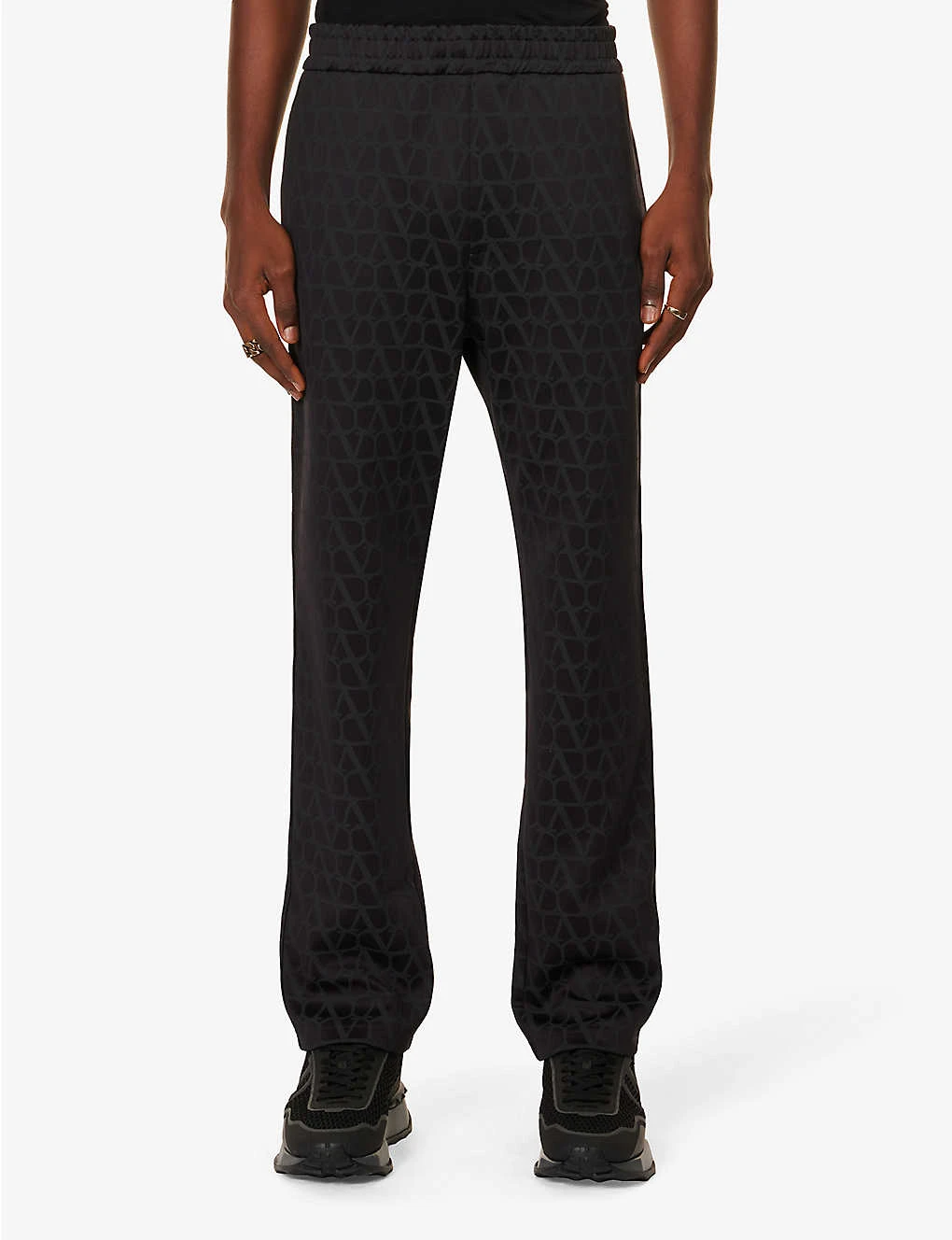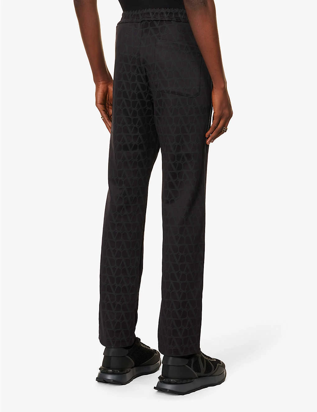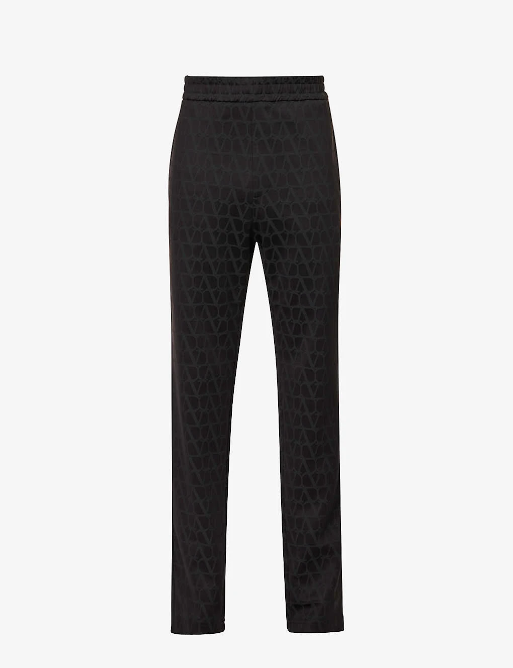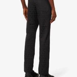 - Regular fit, mid-rise, straight leg, elasticated drawstring waistband, two slip pockets at sides, patch pocket at back, all-over brand pattern